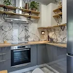W apartamencie Fjaka jest wyposażona kuchnia z piekarnikiem i zmywarką do naczyń dla gości.